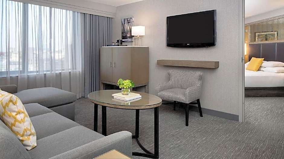 Featuring a panoramic view of Boston State House, this suite with a foyer has a dressing room and a wet bar. There is a separate living area and a dining area with seating for 8 guests.